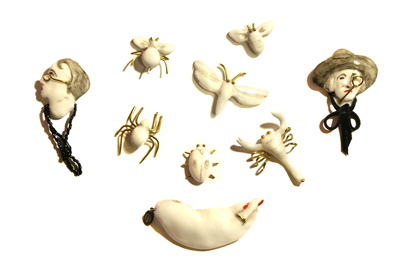 リルズジュエリー東京で創られる "フモアフォル" なモチーフの数々は、趣味で集めたヴィンテージパーツを使ったり、プラスティック素材を切削したり、月日をかけて原型から創り込んだりと、作品に合わせ 様々な方法で仕上げています。