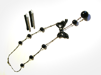 ~1920's Vintage Style Bow Necklace. アールヌーボー~アールデコ期を象徴するモチーフ型をつくり、ビンテージ・ビーズと色味を合わせたボウを一つ一つ制作した。