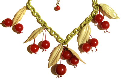 1940's Bakelite Style Cherry Necklace. ヴィンテージファッションに 40's デザイン・チェリー・ネックレス。この実のパーツは恐らくヴィンテージです。