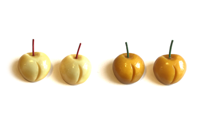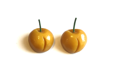 1930〜1940年代ファッションのためのチェリーのピアス。for 1930's-1940's Vintage Fashion! ※サイズ感注意 ↑の写真で大きく見えるのは絵が小さいからです。