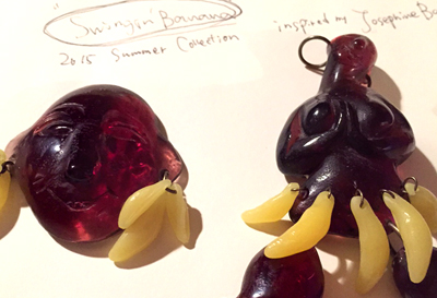 1920年代のパリを席巻したダンサーJ.B.からイメージトレードマークのバナナと、彼女のルーツ・アフリカンのエナジーを 1920's〜1940'sスタイルのプラスティックジュエリーとして創作した。