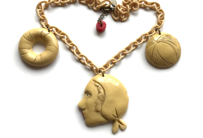 ビーチで泳ぐビンテージガールSWIMMING GIRL 1930s.アジャスターにはおまかせでビンテージビーズをおつけします。