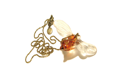 ミツバチのペンダント。真鍮のチェーンが美しく、古いお洋服に馴染みます。