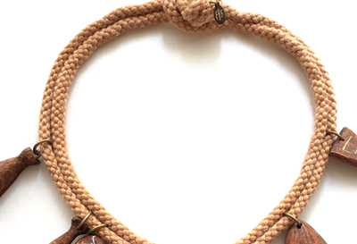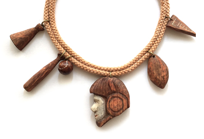 手彫刻とペインティングで仕上げた、ウッドチャームのスクール・コード・ネックレス。1940s Vintage Style.